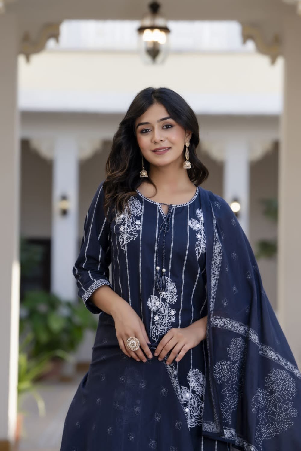 Premuim Cotton Embroidered Kurta Set With Dupatta